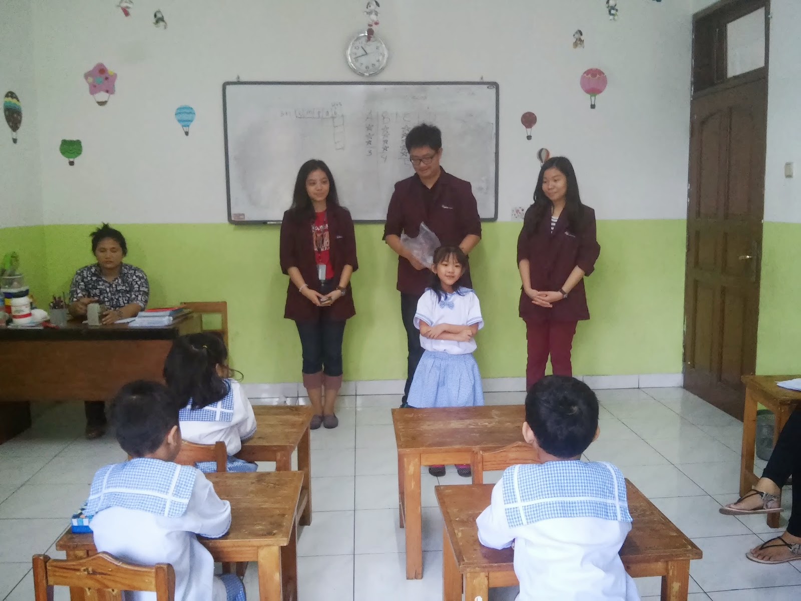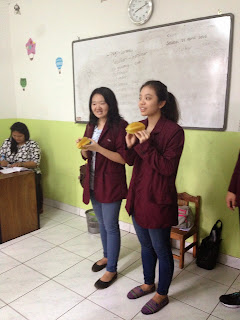 Pertama kami menjelaskan informasi singkat mengenai buah yang kami bawa ini, apa saja kegunaannya, vitamin yang terkandung dan lain-lainnya. Kami juga mengajarkan anak-anak mengenai bahasa inggris dari buah-buah yang kami bawa ini.