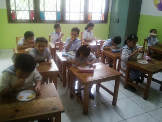 Setelah itu, kami membagikan buah yang sudah kami potong dan siapkan ini dan kami mengajarkan kepada anak-anak bahwa setiap makanan sebaiknya dihabiskan.
