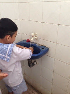 Selanjutnya, kami menyiapkan buah-buah ini untuk disantap oleh anak-anak. Tidak lupa pula kami mengajak mereka untuk bercuci tangan sebelum memakan buah ini.
