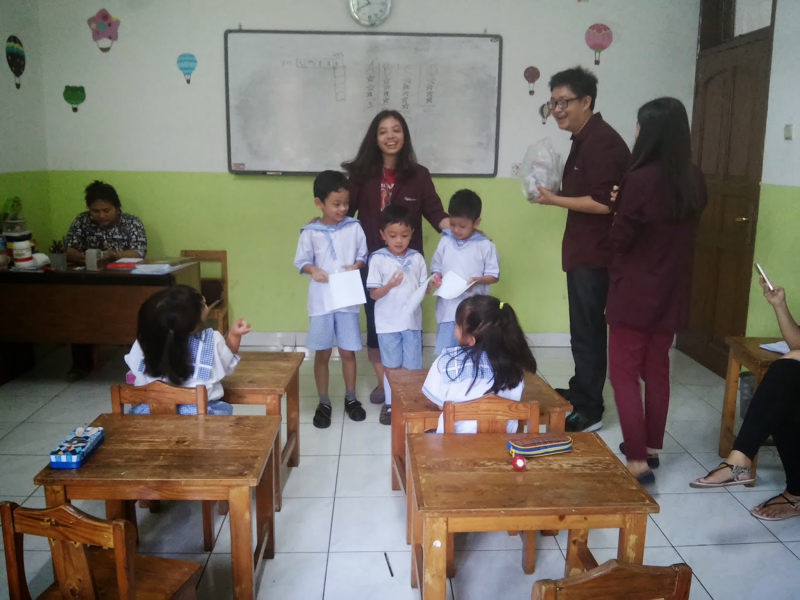 Pertemmuan kami kali ini kami tutup dengan berpamitan dengan guru dan anak-anaknya sekalian, meminta maaf apabila kami melakukan kesalahan. Banyak dari mereka yang menyayangkan kepergian kami ini, mereka terus mengajak kami untuk kembali minggu depannya dan seterusnya. Hal ini tentu membuat kami sangat terharu. Setelah itu kami membagikan bingkisan kepada anak-anka berupa alat tulis, lalu kami berdoa bersama dan bersalaman.